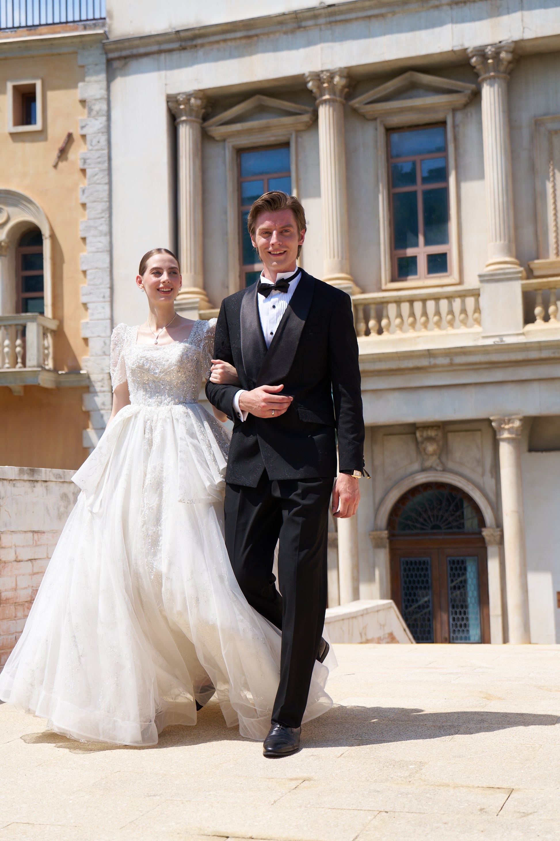 A premium 100% wool men’s wedding tuxedo designed for sophisticated grooms and formal occasions. Featuring a double-breasted jacket with luxurious satin shawl lapels, structured shoulders, and a sharp tailored fit, this tuxedo exudes timeless elegance. Fully lined with smooth polyester for a refined drape and comfort. Perfect for weddings, black-tie events, and bespoke tailoring projects.